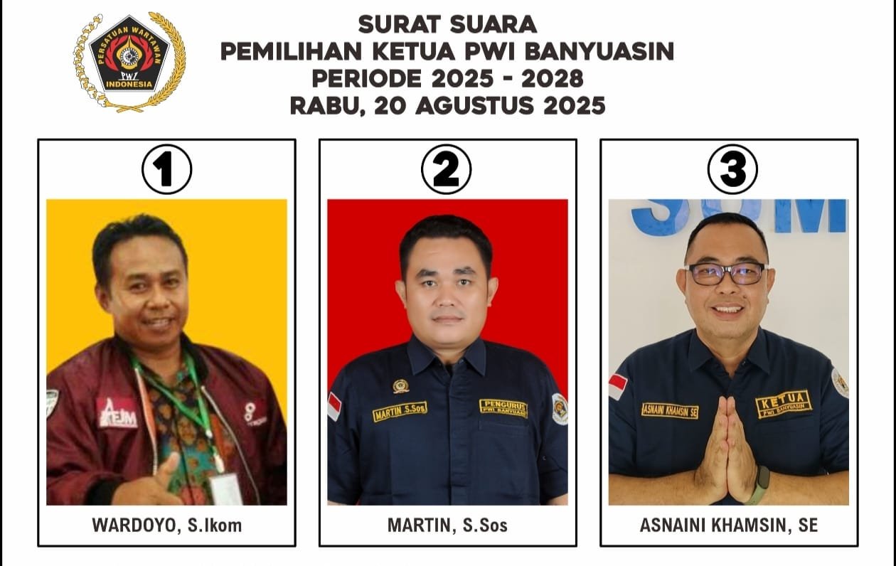 Ketiganya berpeluang menjabat posisi ketua PWI Banyuasin periode 2025-2028 adalah Wardoyo, Martin dan Asnaini Khamsin.