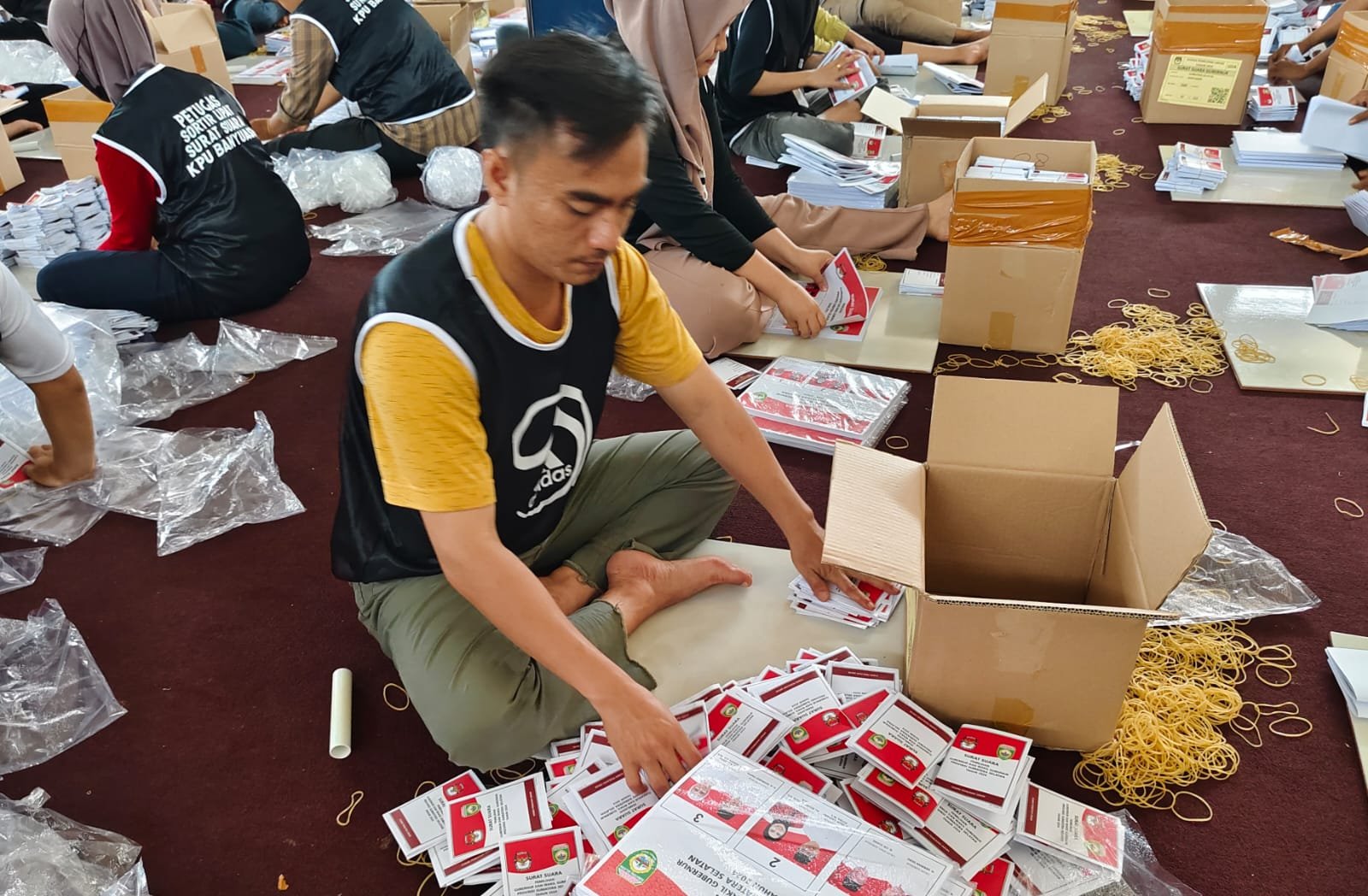 Badan Pengawas Pemilu (Bawaslu) kabupaten Banyuasin melaksanakan pengawasan pelipatan kotak suara dan surat suara calon Gubernur dan Wakil Gubernur serta calon Bupati dan Wakil Bupati.