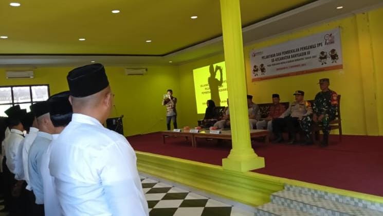 Pangkalan Balai, mcpnews.id – Komisioner Bawaslu Banyuasin Raden Zakaria hadiri pelantikan dan pembekalan Pengawas Tempat Pemungutan Suara (PTPS) kecamatan Banyuasin III.