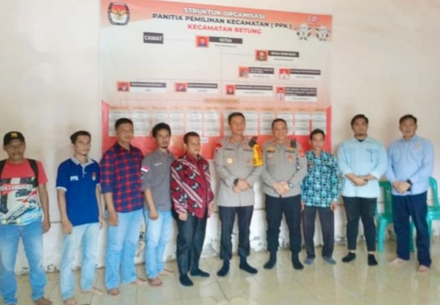Tak sendiri. Kapolres turut didampingi Kasat Intelkam Polres Banyuasin Iptu Bagus Tabiin S Tr K, Kapolres Betung Yuli Mishardi SH, Dino Plt Camat Betung, Anggota PPK kecamatan Suak Tapeh, Anggota PPK kecamatan Betung..