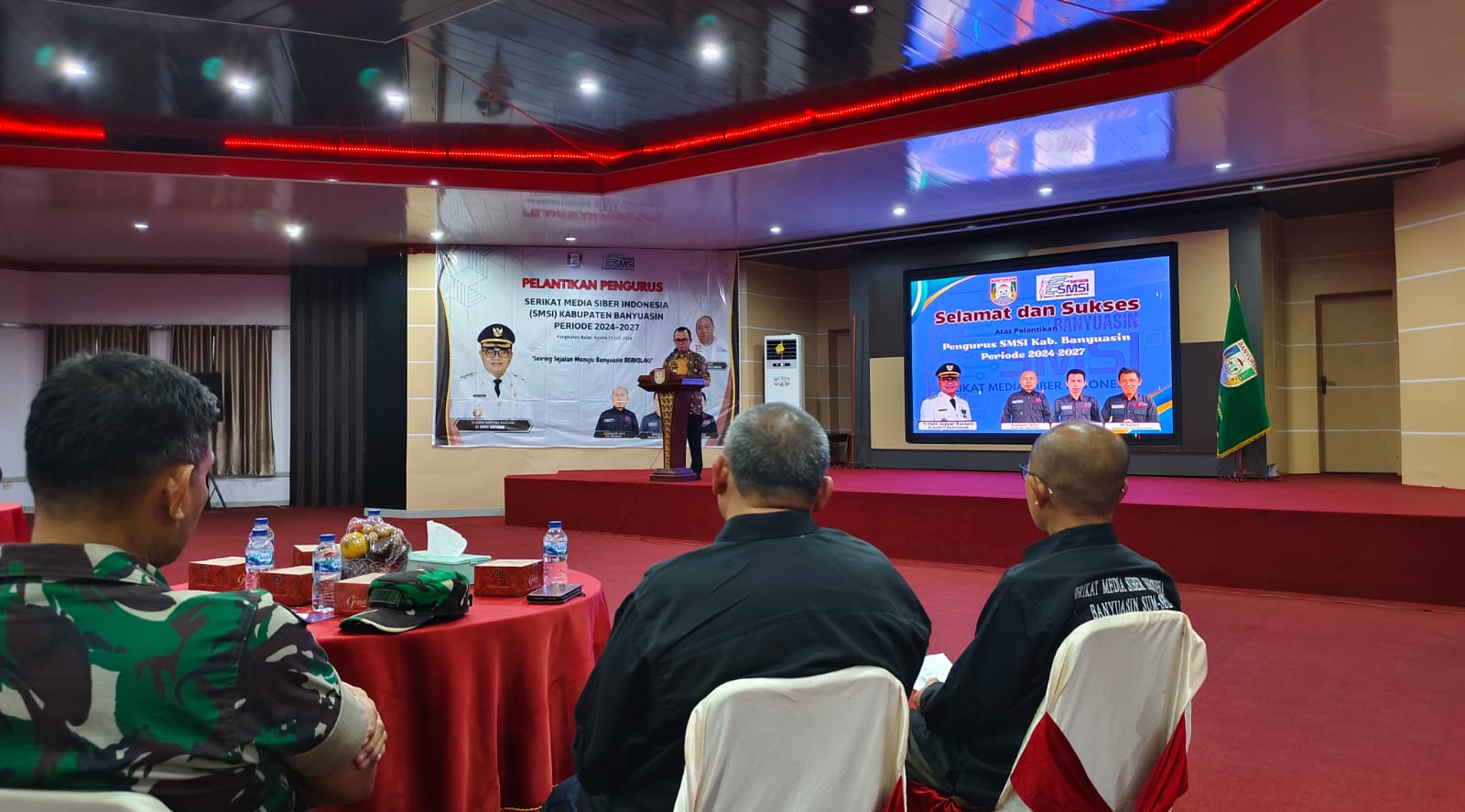 Pangkalan Balai – Media Citra Publik |Meriah| Kepengurusan asosiasi perusahaan pers Serikat Media Siber Indonesia (SMSI) kabupaten Banyuasin resmi dilantik, Pelantikan dihadiri Hani Syopiar Rustam Pj Bupati berlangsung di Auditorium Pemerintah kabupaten Banyuasin. Kamis (11/7).