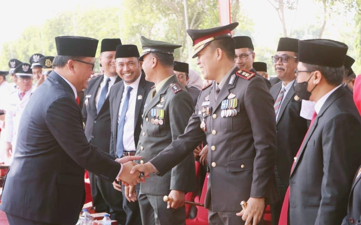 Turut mendampingi Sekda kabupaten Banyuasin, Kapolres, Ketua DPRD, Dandim 0430, Danyon Zikon 12 KJ, Kepala Pengadilan Negeri, Kepala Kejaksaan Negeri, Ketua Pengadilan Agama dan tamu undangan. (desi)