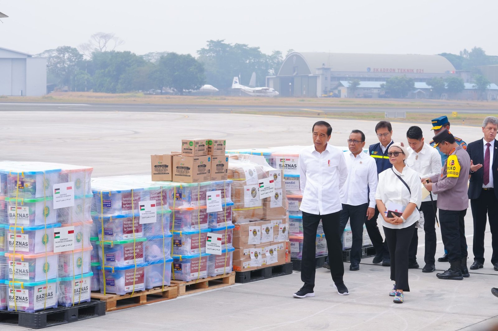 Bantuan kemanusiaan tahap pertama diterbangkan pagi ini dan dilepas langsung Presiden Jokowi juga Kapolri Jenderal Polisi Drs Listyo Sigit Prabowo turut mendampingi.