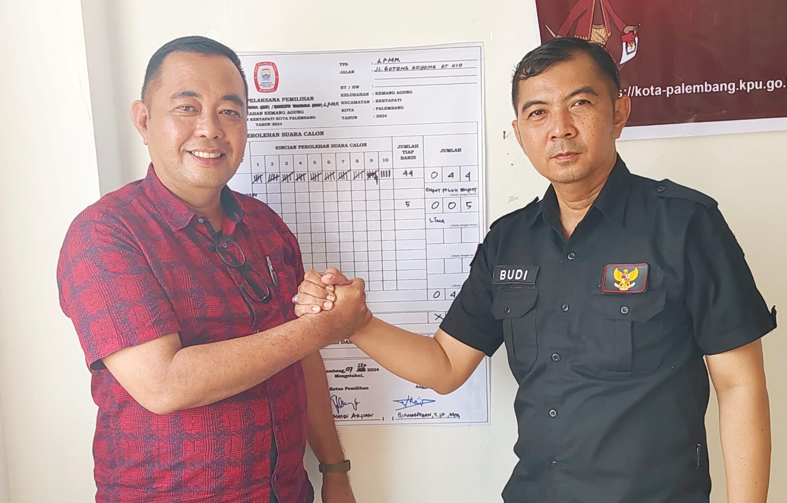 Sebagai pemilik suara sah hadir 43 RT, 9 RW, Hanafi tokoh agama, Junaidi Arpan tokoh masyarakat serta Agus Mulyono ketua Karang Taruna.
