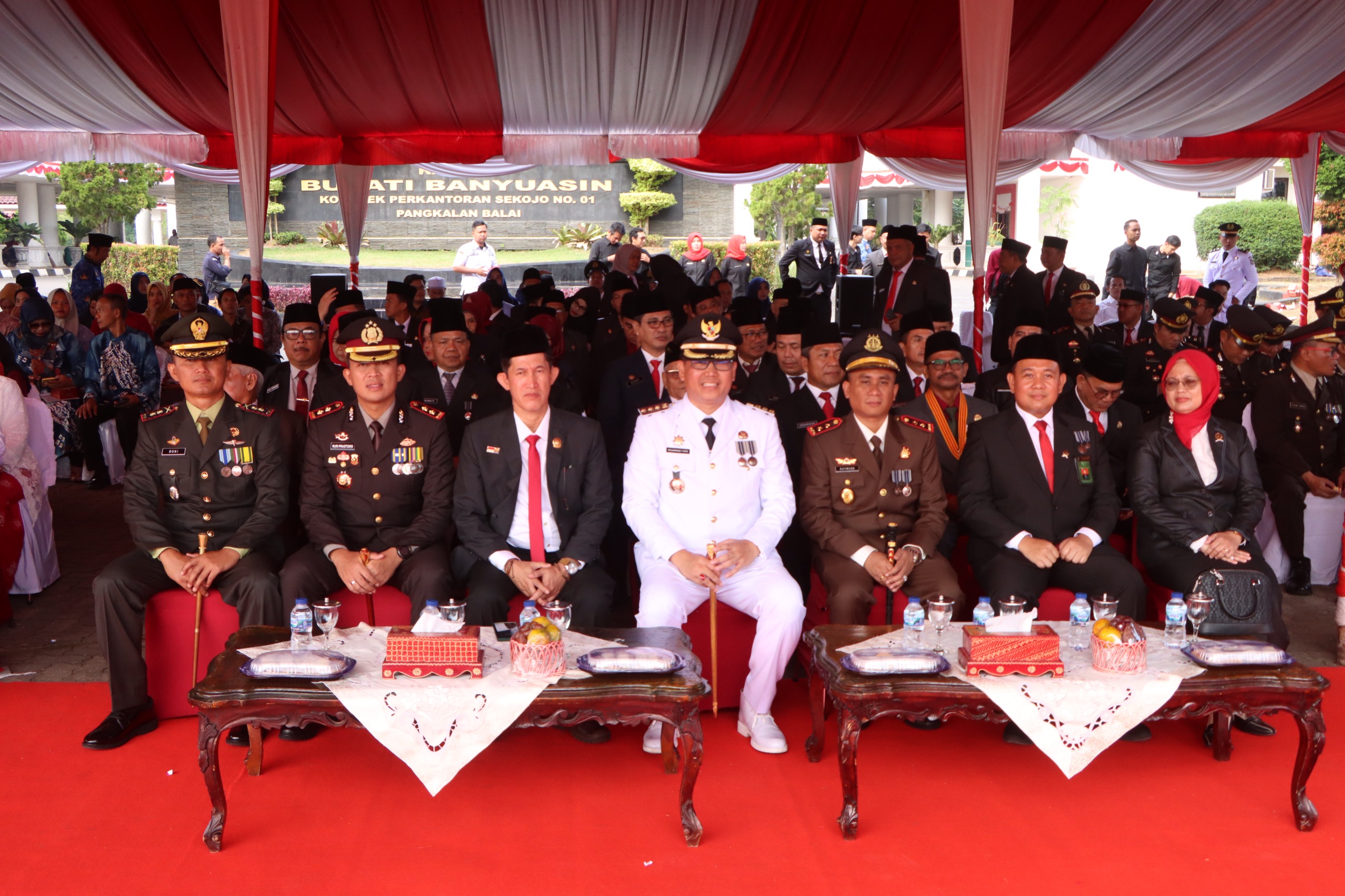 Upacara dipimpin Pj Bupati Banyuasin Muhammad Farid diikuti Ketua DPRD Banyuasin,