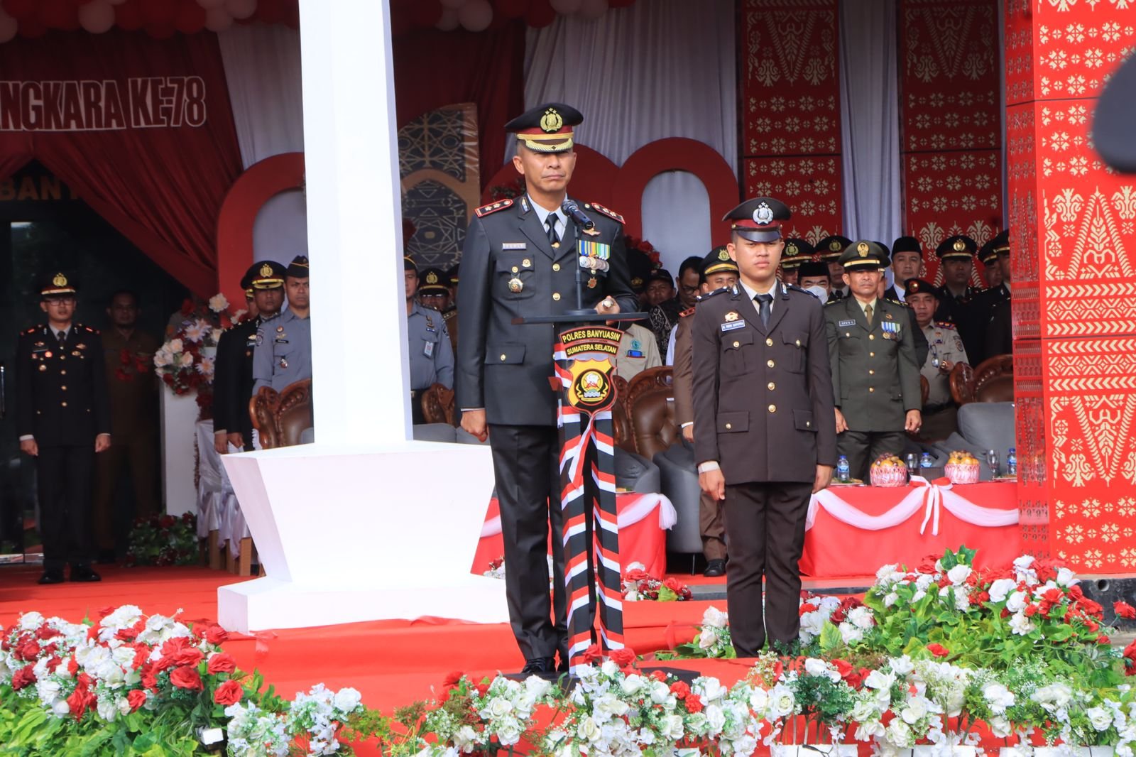 Kapolres mengatakan bahwa upacara ini merupakan puncak dari semua rangkaian kegiatan hari ulang tahun bhayangkara ke 78.