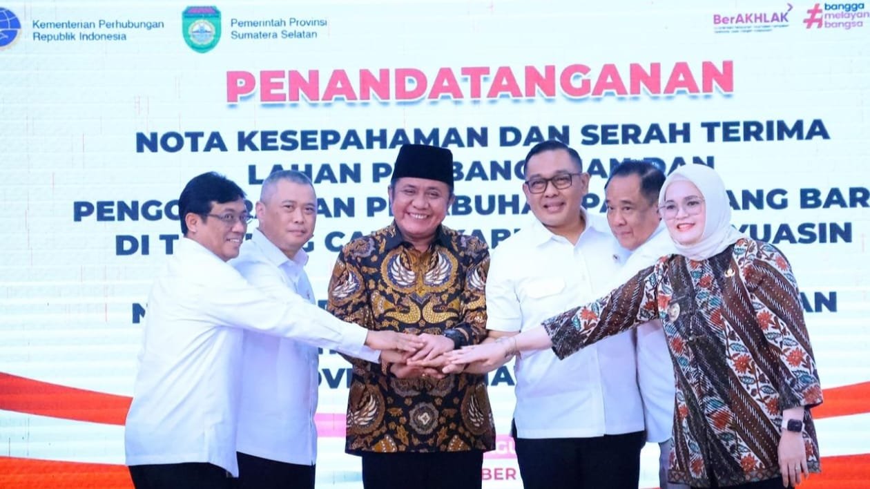Penandatanganan dilakukan Menteri Perhubungan RI Dudy Purwagandhi dan Gubernur Sumsel Herman Deru, disaksikan Wamen Investasi Todotua Pasaribu, Wagub Cik Ujang dan Wakil Bupati Banyuasin Netta Indian.